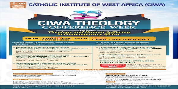 The Catholic Institute of West Africa (CIWA) is a higher Ecclesiastical Institute of the Catholic Church in the West African Sub-region. It was founded in 1981 by the then Association of Episcopal Conference of Anglophone West Africa (AECAWA) for the study of theology and related disciplines in the socio-cultural context of West Africa. The Institute took off on the 8th of December 1981 at Ozuoba in Port Harcourt, Nigeria in a house formerly used by Jesuit Priests as a Retreat Centre. Its present proprietor is the RECOWA/CERAO.
